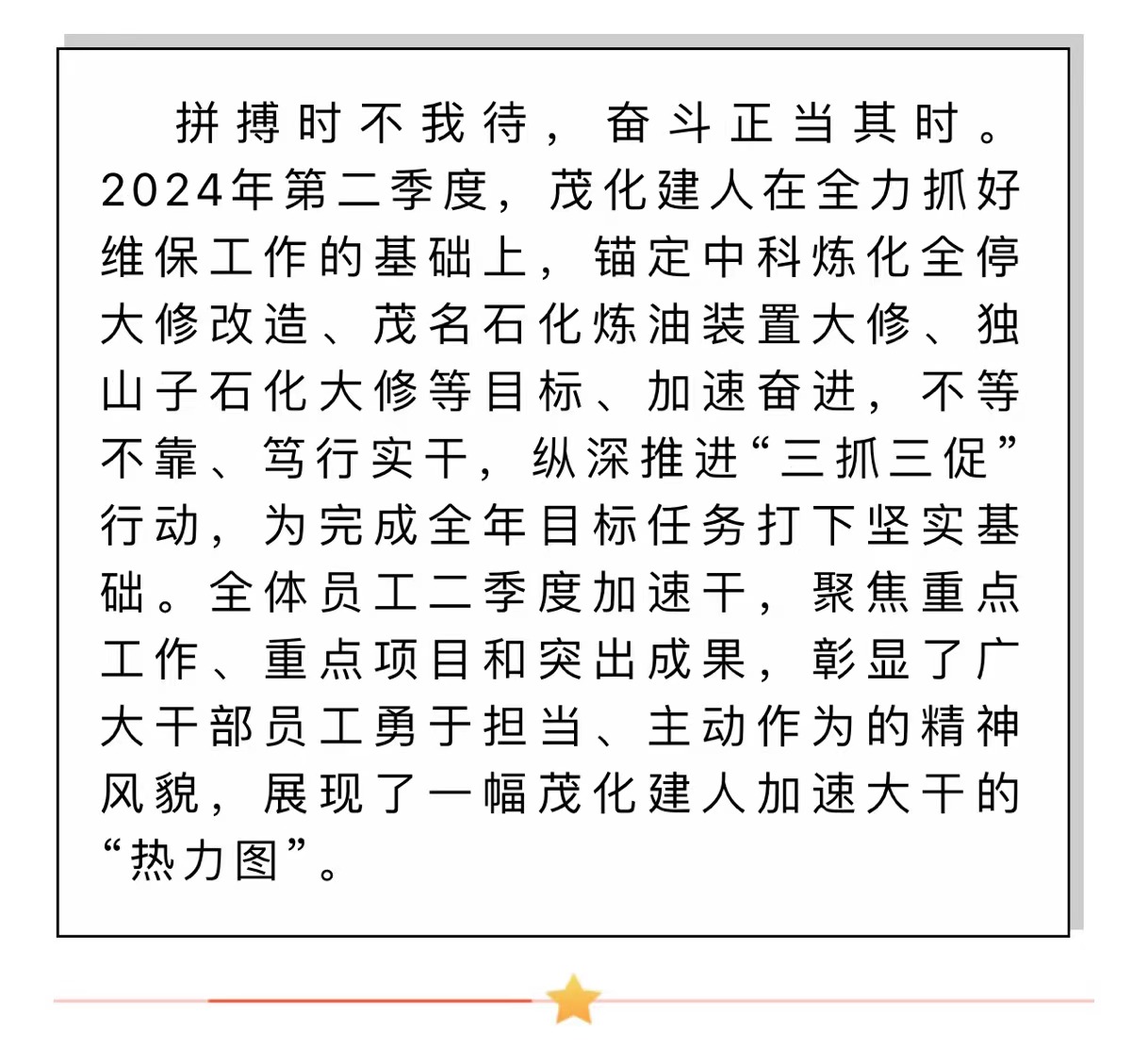 二季度 加速干丨一起來(lái)看茂化建人“熱力圖”