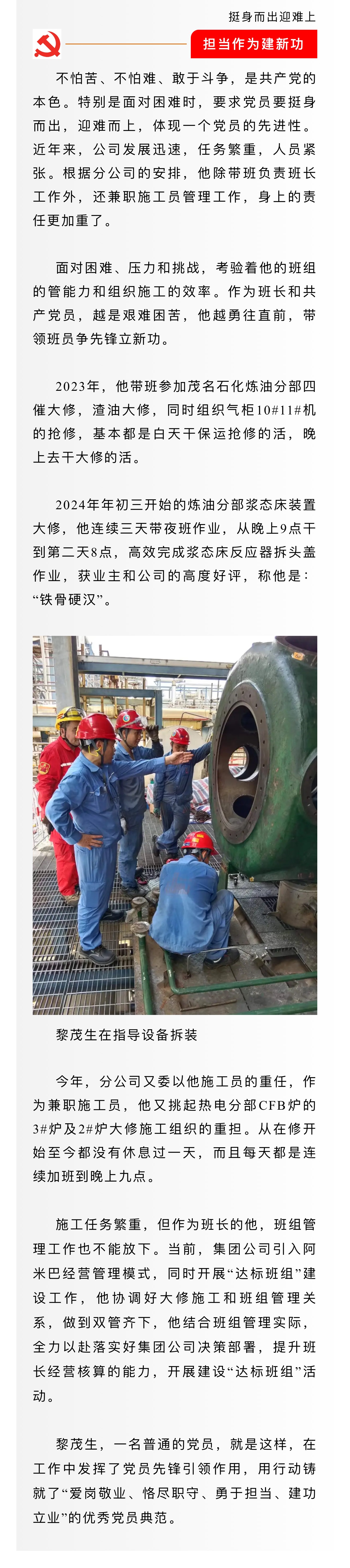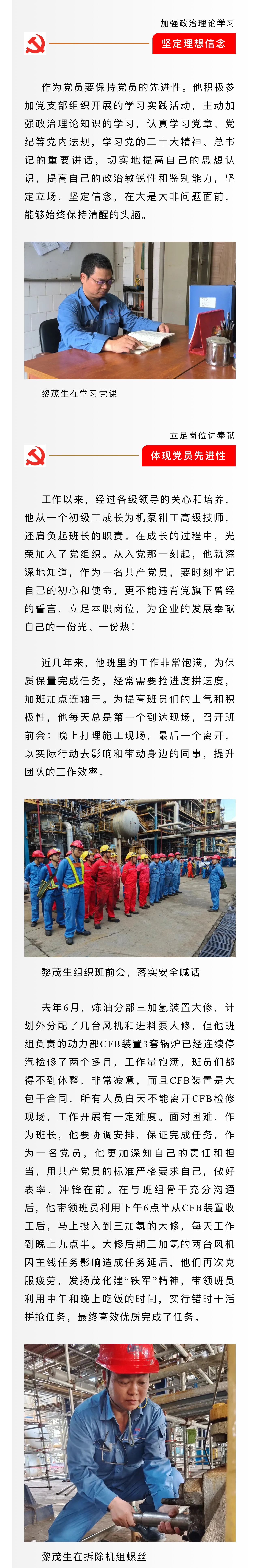 黨旗照耀我奮斗——記集團公司優(yōu)秀共產黨員黎茂生